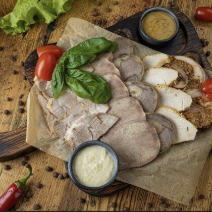 Мясное ассорти с пикантным соусом из хрена и горчицы